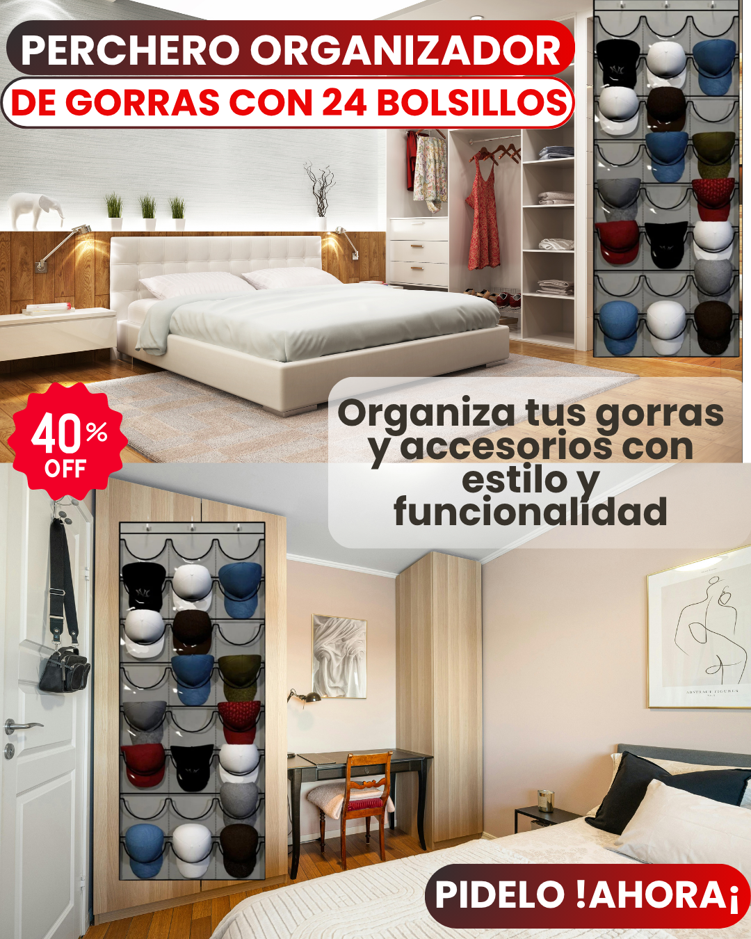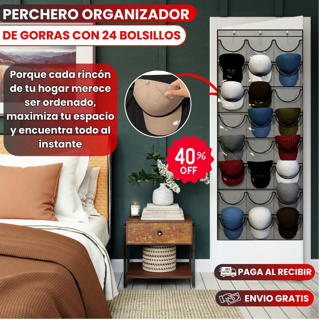 Lo que incluye el producto: 1 organizador de 24 bolsillos + 3 ganchos