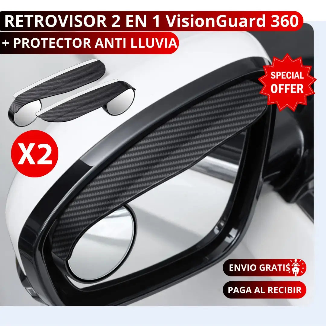 TU COMPRA INCLUYE:  1 Par de accesorios  2 en 1 (izquierdo y derecho), listos para instalar.(protector antilluvia +espejo de puntos ciegos 360°