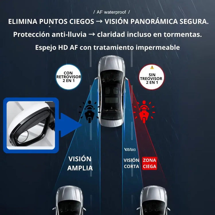 ACCESORIO PARA RETROVISOR 2 EN 1- Espejo 360° ➕Protector anti lluvia